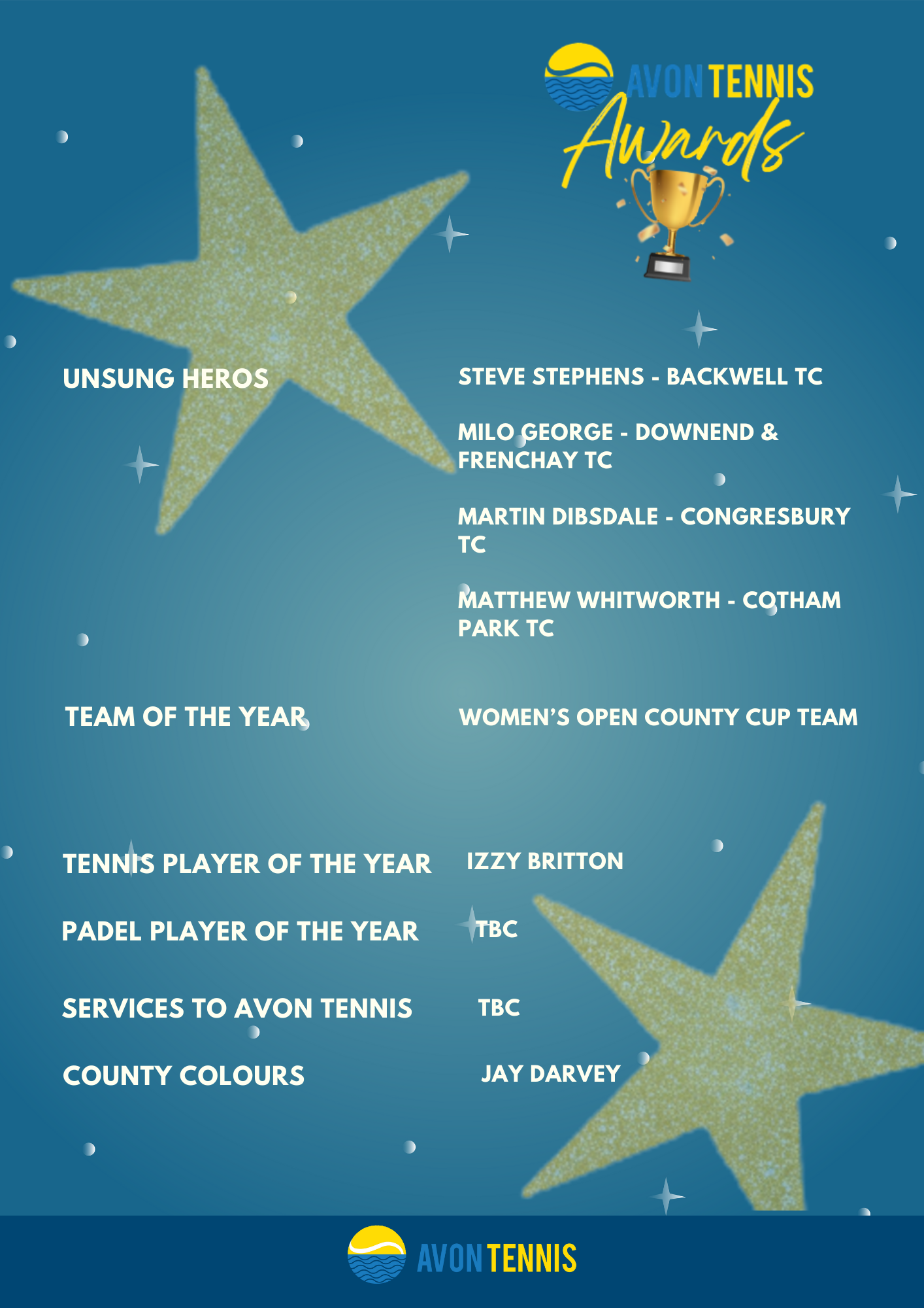 Past winners of the Awards can be viewed by following the links: LTA Tennis Award Winners and Avon Tennis Awards